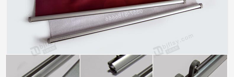 铝合金挂轴,可用于画面、吊旗的展示,尺寸可以定做,请咨询客服。两种挂轴的堵头安装方式不一样,所以圆挂轴的长度要比画面的宽度多2-3cm(例如60cm宽的画面,需要用62cm-63cm长的圆挂轴)。扁挂轴的长度和画面的宽度一样就可以的。亲!看挂轴两侧的堵头就可以明白的哦。 挂画架产品是针对企事业单位为宣传推广活动因场地不便悬挂,张贴宣传物料而开发的系列展具。该展具多采用最新的吸塑工艺和各种铝型材料组合而成,具有轻便简捷,组合性强等优点。